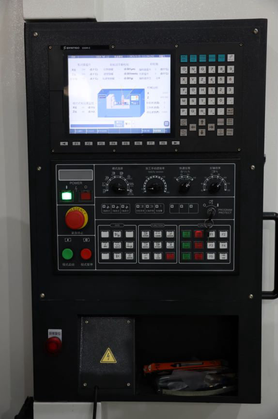 主轴AC伺服电机,X、Y、Z轴AC伺服电机,主驱动,PLC以及操作面板均为日本原厂产品,该机为8.4英寸液晶彩色显示屏幕,超薄型散热快,寿命长,存储容量为640米,可四轴控制,三轴联动,中文显示。图形显示(2D),刚性攻丝,坐标旋转,比例缩放,螺旋插补,后台编辑,前插CF卡,DATA SERVER大容量编辑,AI轮廓控制,以太网络均为标准配置。